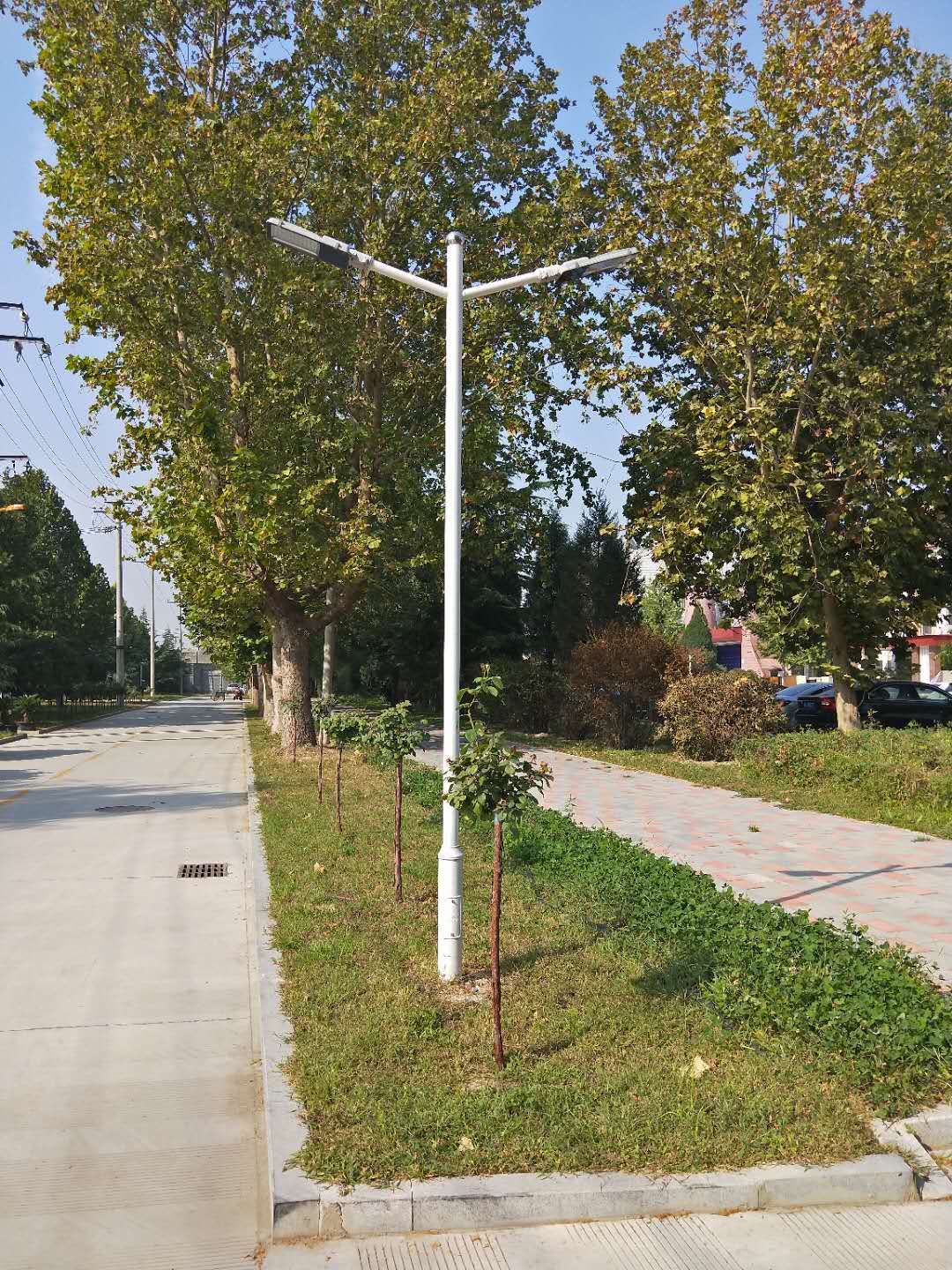 8、 太陽能路燈安裝距離:80W,適用于燈桿高度8m(適用于道路寬度10-15m,3車道);