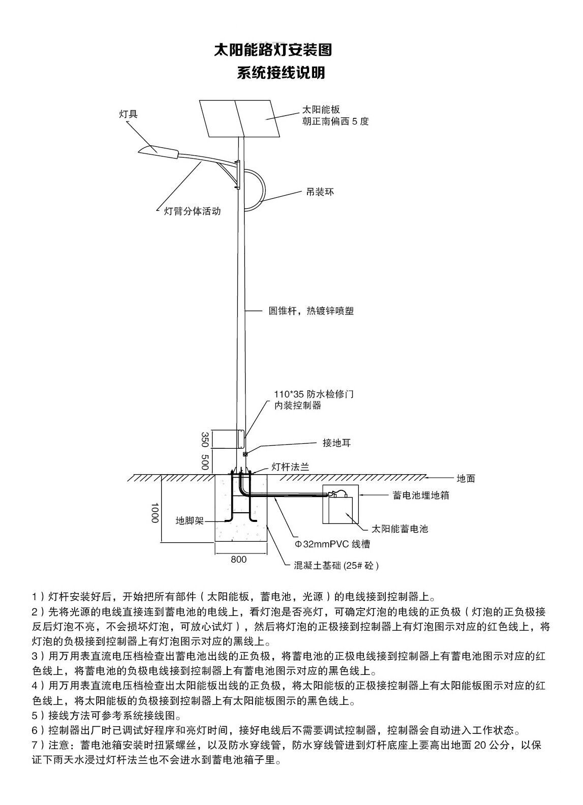 1、太陽能路燈是耗電量很低的,但是我們在安裝使用中要看好燈的正負極,如果說接反了是不會亮的。 2、安裝的時候都是有相應的說明的我們根據說明來完成就可以,但是要注意不要裝反了就可以。 3、把燈按好后,我們再來安裝電池,方法是一樣的都要分好正負極,跟燈的線路連接在一起在進行操作。 4、測出太陽能的正負極,連到控制器上,完成后就可以把路燈固定好,按著裝配路燈的方法