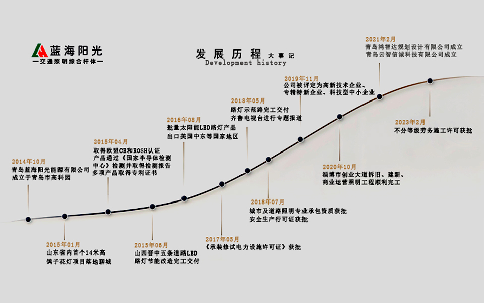 青島藍(lán)海陽光能源有限公司產(chǎn)業(yè)覆蓋照明方案設(shè)計、產(chǎn)品研發(fā)制造、工程項目實施、物聯(lián)網(wǎng)智能管理維護(hù)四大業(yè)務(wù)板塊。是高新技術(shù)企業(yè)。 公司全產(chǎn)業(yè)鏈產(chǎn)品全部由位于“中國路燈生產(chǎn)基地”高郵市的華智光城市建設(shè)(揚(yáng)州)有限公司設(shè)計、生產(chǎn)、制造。